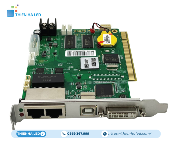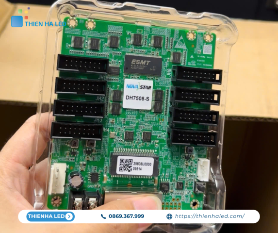 - Receiving Card (Card nhận): Lắp trên từng cabinet hoặc từng hub card bên trong module LED. Nhận gói tin từ Sending Card, giải mã và điều khiển chính xác từng đèn LED sáng đúng màu RGB, độ sáng và thời gian.